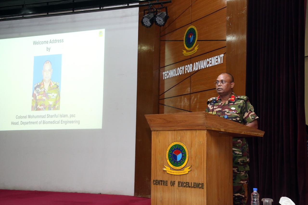 The respected Commandant of MIST, Maj Gen Md Nasim Parvez, BSP, ndc, afwc, psc, graced the occasion as the Chief Guest. The session was opened with a welcome address by Col Mohammad Shariful Islam, psc, Head, Department of BME, emphasizing the department’s vision to foster innovation at the intersection of engineering, biology, and medicine.