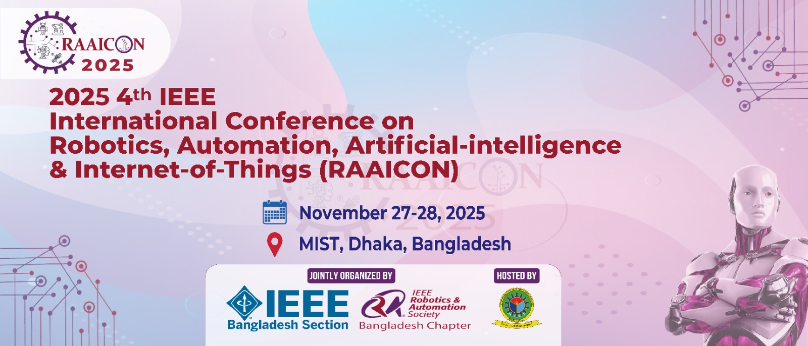 The Military Institute of Science & Technology (MIST), Dhaka, is set to become the national and international hub of innovation as IEEE RAAICON 2025 (raaicon.org) and ROBOlution 2025 (robolution.mist.ac.bd) bring two exciting days of robotics, automation, AI, and IoT excellence.